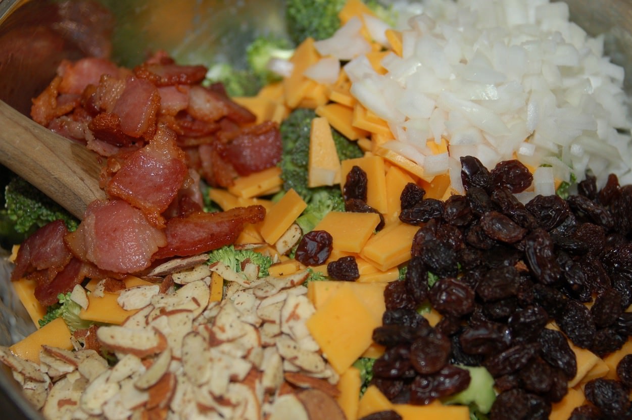 Not only is broccoli salad a healthy snack, but it also tastes so good, particularly when combined with raisins, almonds and salty bacon!